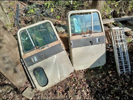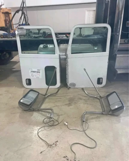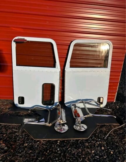 Set of 2005 Peterbilt doors one piece manual crank glass straight doors not slanted and a set of cab mounted mirrors with moto mirrors. No corrosion on doors.