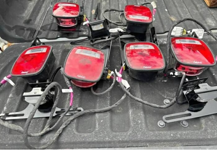 3 sets of like new tail lights for peterbuilt semi or dump truck. Comes with brackets and wiring