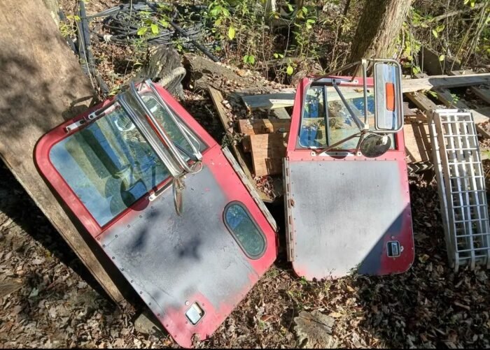 Set of 2005 Peterbilt doors one piece manual crank glass straight doors not slanted and a set of cab mounted mirrors with moto mirrors. No corrosion on doors.
