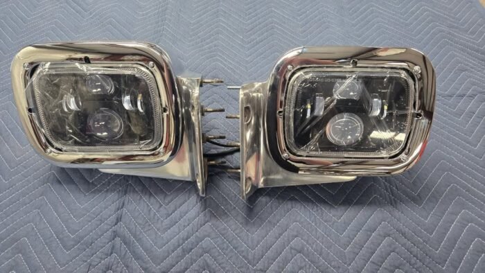 So we have this set of headlights if anyone is looking for some. Shaved single square all new guts and has led projector replacement lights and new wiring.