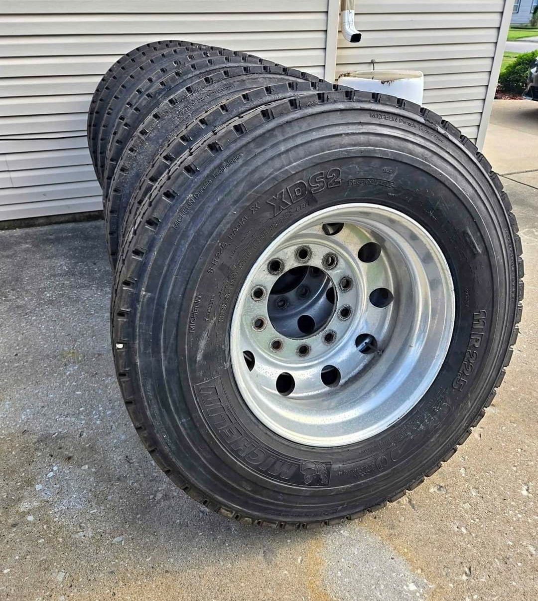 Set of 8 Michelin 11R22.5 tires and rims