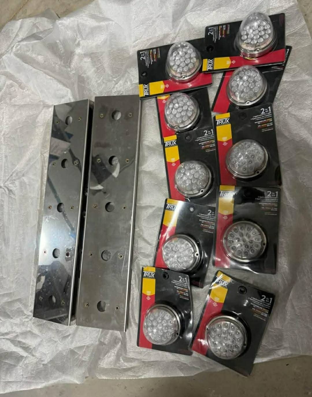 Brand new stainless steel air breather panel for peterbilts with 10 watermelon led amber to red dual rev lights.